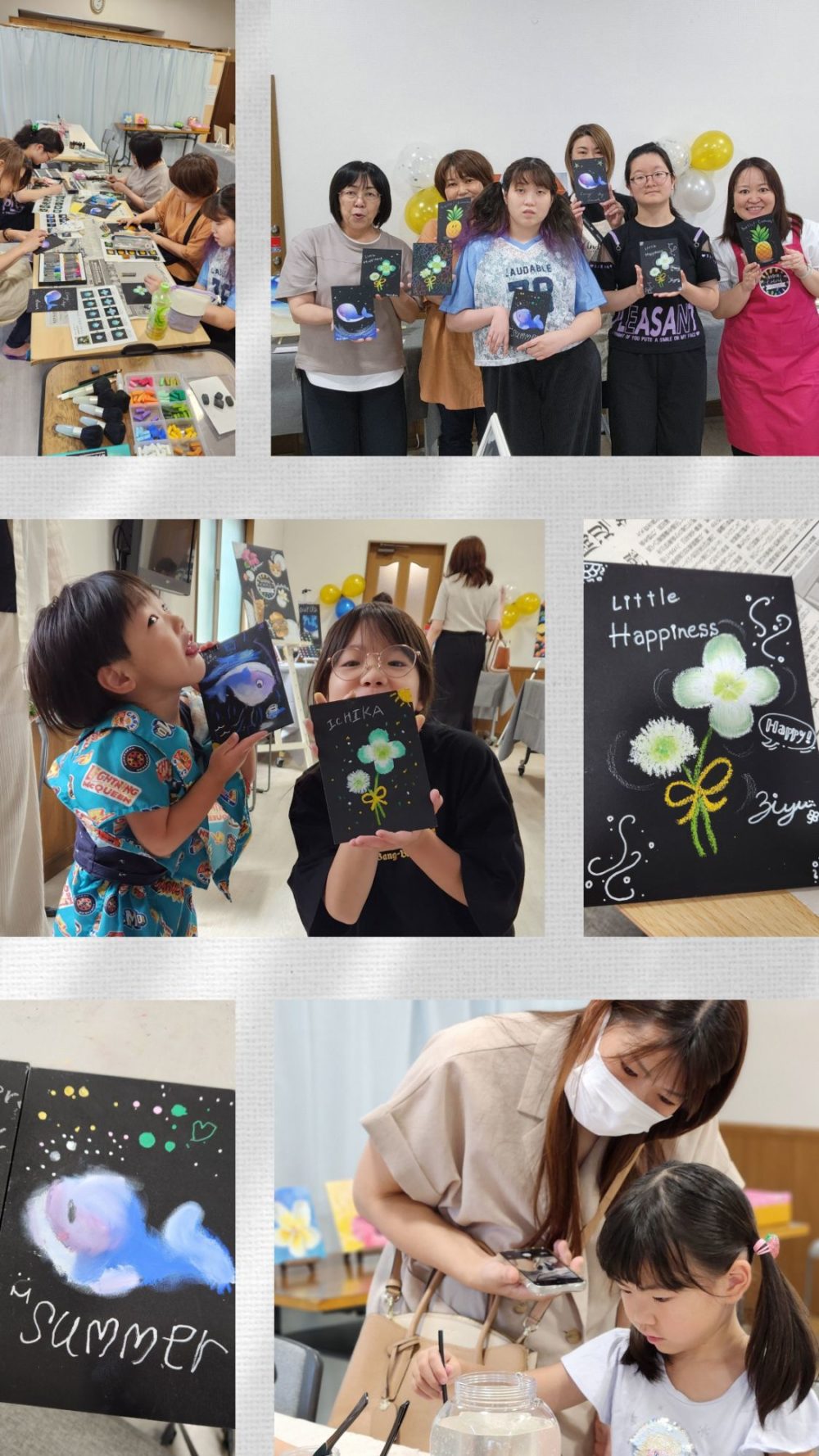 チョークアートのワークショップは計32名のご予約をいただきました。リピーターさんも初めてのお子さまもたくさんで、同じ下書きでも仕上がりはみんなオリジナル。完成した瞬間の「わぁ〜!」って声と笑顔、最高でした。